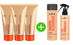 O kit mais vendido e o mais recomendado é o KIT completo, com 3 Smooth Experience + 1 Shampoo Restaurador + 1 Fluído Pós-progressiva. O Smooth Experience vai dar o liso perfeito e eliminar o frizz. O shampoo restaurador vai fazer uma nutrição e hidratação profundas, evitando assim o ressecamento, protegendo a cor, e promovendo maciez e brilho! Já o fluido pós-progressiva vai manter o efeito liso por muito mais tempo, além de dar aquele toque final como se estivesse acabado de sair do salão de beleza.